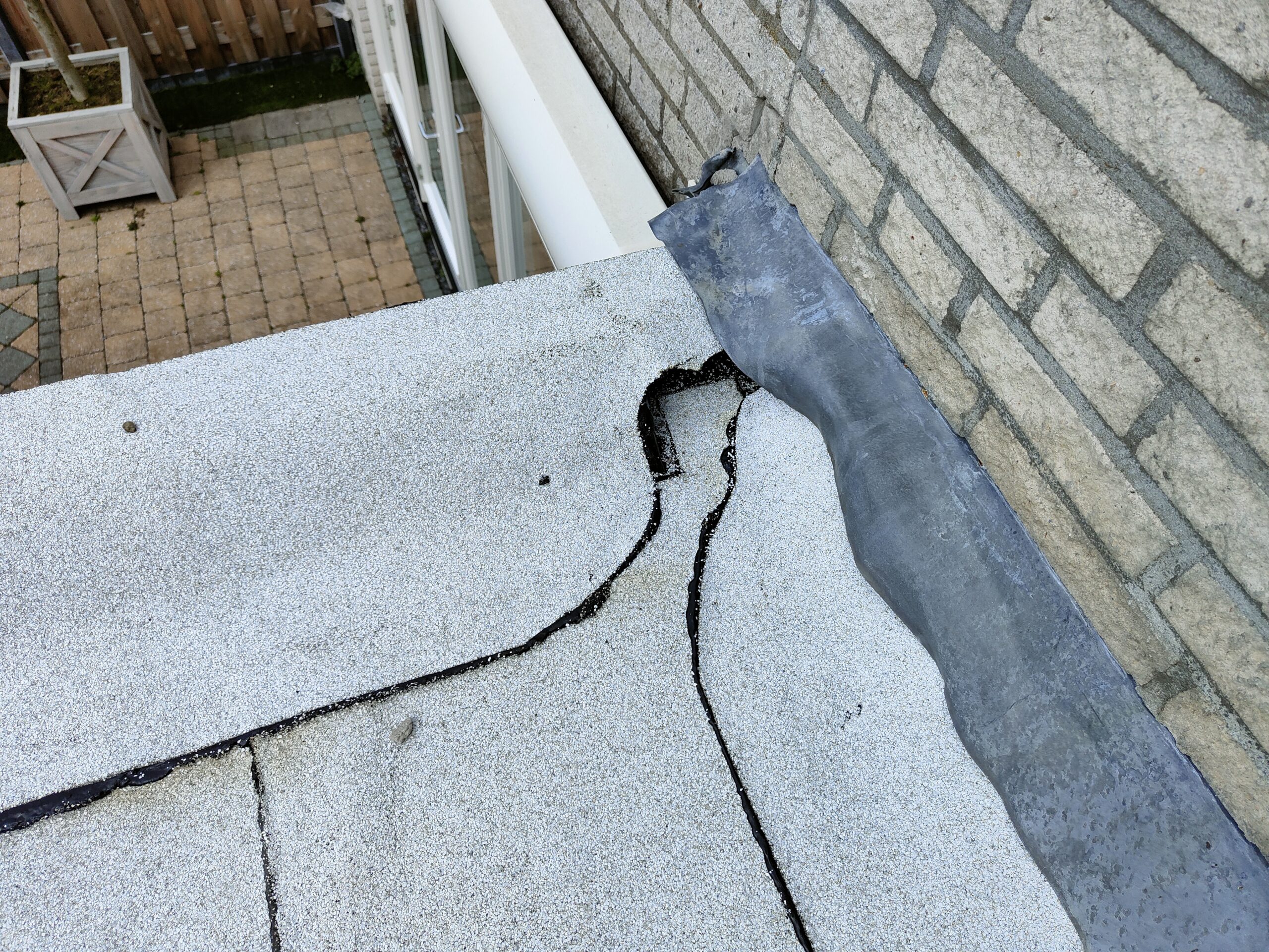 • Losse dakbedekking of gescheurde naden bij platte daken